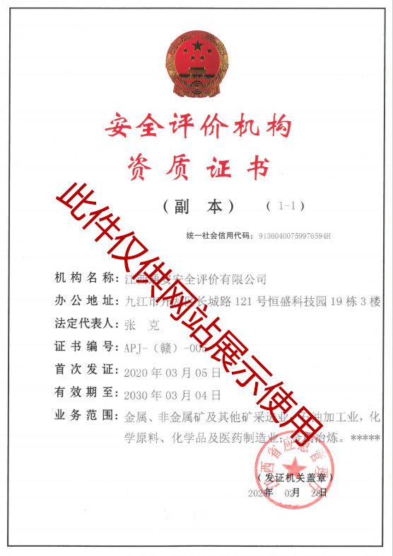 • 安全評(píng)價(jià)機(jī)構(gòu)資質(zhì)證書(shū)